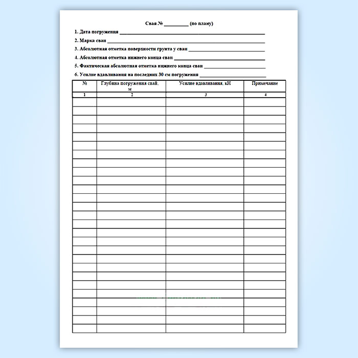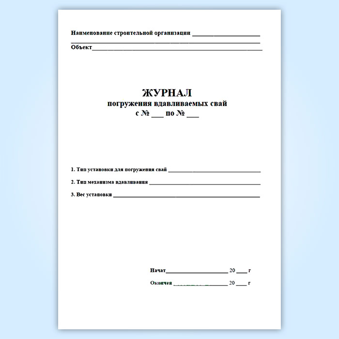 Журнал погружения вдавливаемых свай в Великом Новгороде купить
