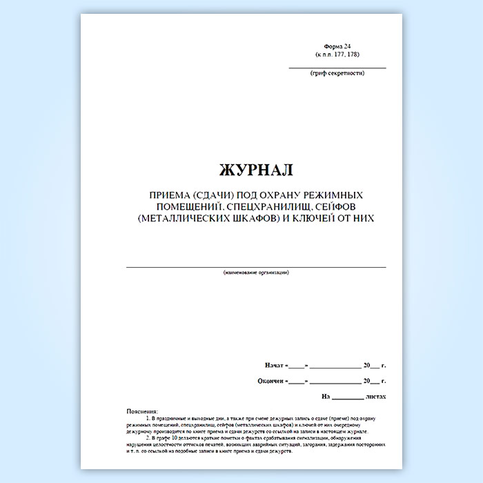 Журнал приема (сдачи) под охрану режимных помещений, спецхранилищ, сейфов (металлических шкафов) и ключей от них в Великом Новгороде купить