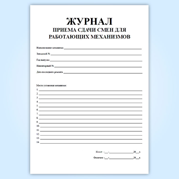 Журнал приема-сдачи смен для работающих на механизмах в Великом Новгороде купить