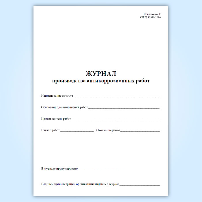 Журнал производства антикоррозионных работ в Великом Новгороде купить