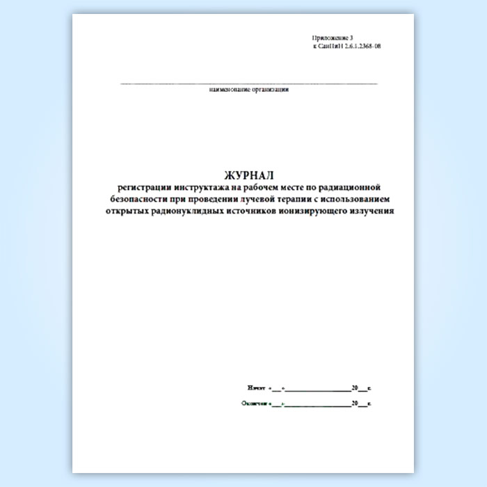 Журнал регистрации инструктажа на рабочем месте по радиационной безопасности при проведении лучевой терапии с использованием открытых радионуклиидных источников ионизирующего излучения в Великом Новгороде купить