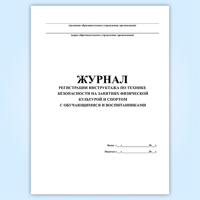 Журнал регистрации инструктажа по технике безопасности на занятиях физической культурой и спортом с обучающимися и воспитанниками в Великом Новгороде купить