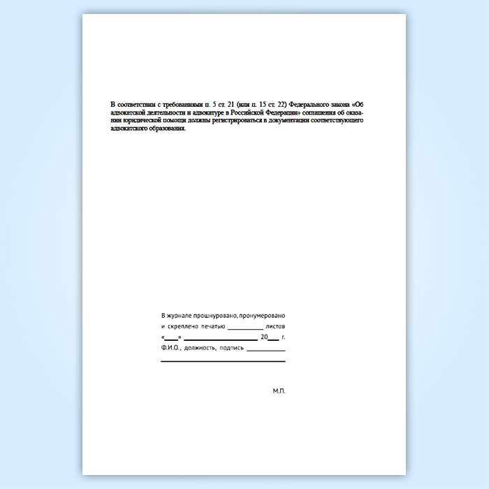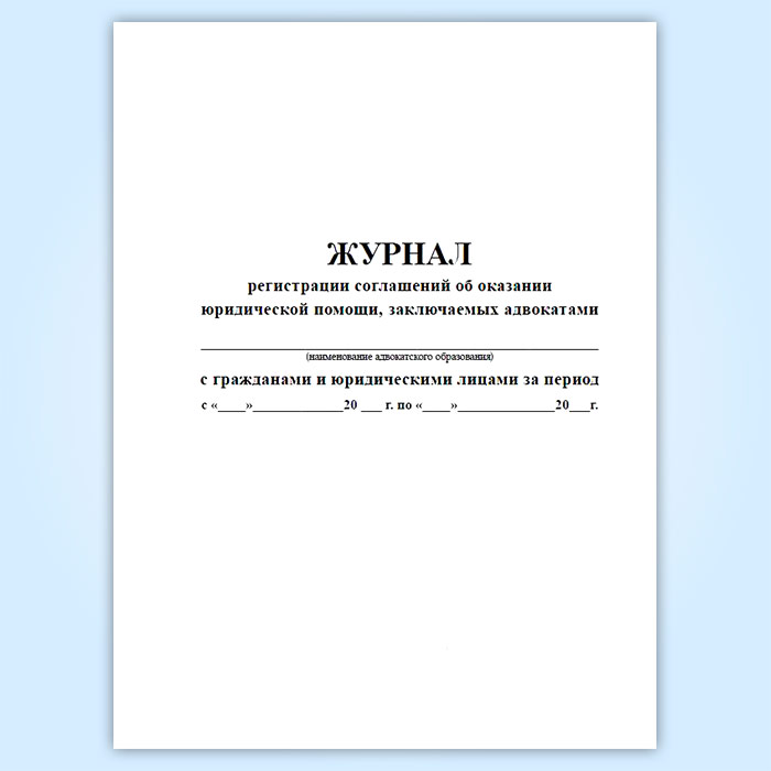 Журнал регистрации соглашений об оказании юридической помощи, заключаемых адвокатами с гражданами и юридическими лицами в Великом Новгороде купить