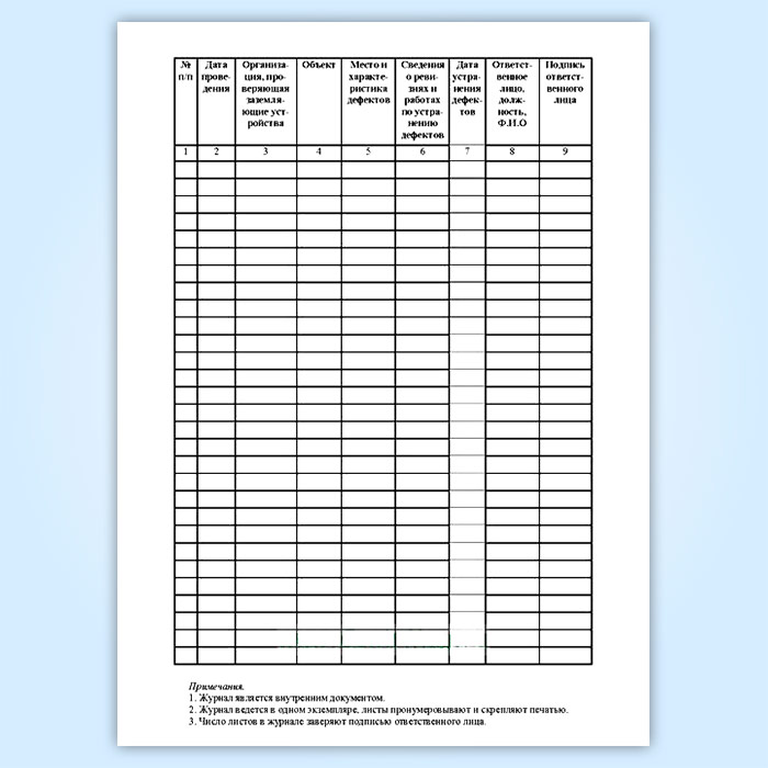 Журнал результатов ревизий устройств молниезащиты, проверочных испытаний заземляющих устройств (форма Б.30) в Великом Новгороде купить