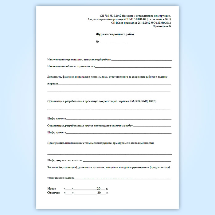 Журнал сварочных работ (приложение к СП 70.13330.2012) в Великом Новгороде купить
