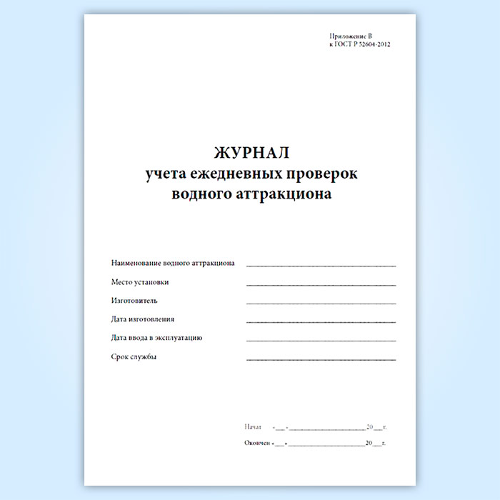 Журнал учета ежедневных проверок водного аттракциона в Великом Новгороде купить
