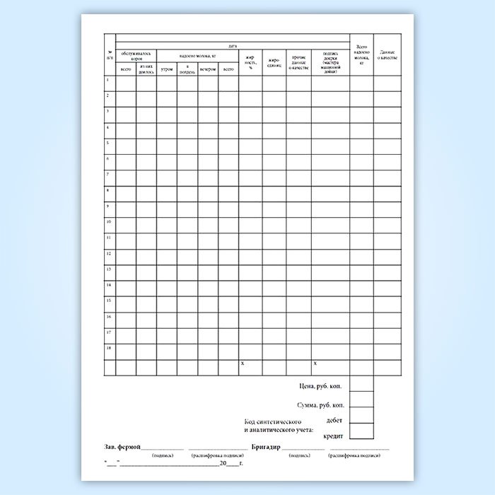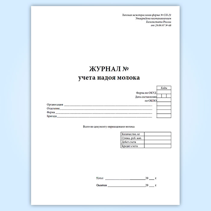 Журнал учета надоя молока (форма № СП-21) в Великом Новгороде купить