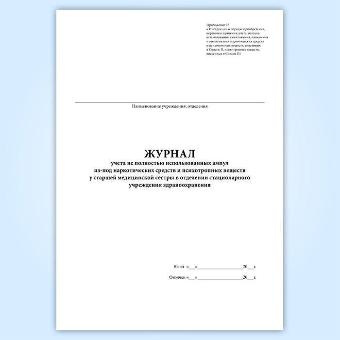 Журнал учета не полностью использованных ампул из-под наркотических средств и психотропных веществ у старшей медицинской сестры в отделении стационарного учреждения здравоохранения в Великом Новгороде купить