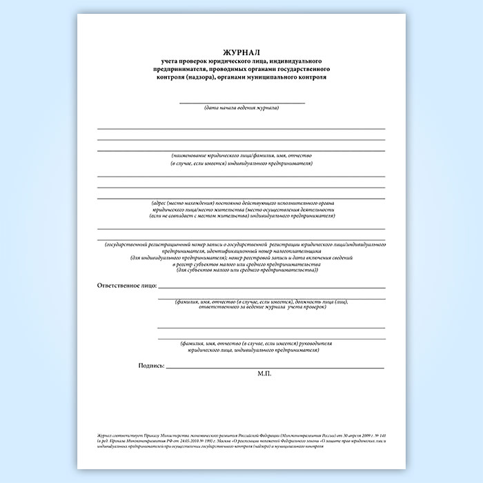 Журнал учета проверок юридического лица, индивидуального предпринимателя, проводимых органами государственного контроля (надзора), органами муниципального контроля (новый) в Великом Новгороде купить