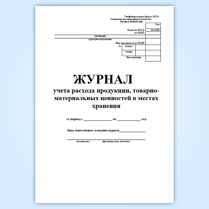 Журнал учета расхода продукции, товарно-материальных ценностей в местах хранения (форма МХ-6) в Великом Новгороде купить