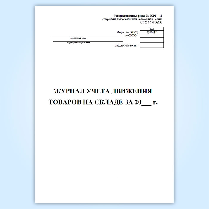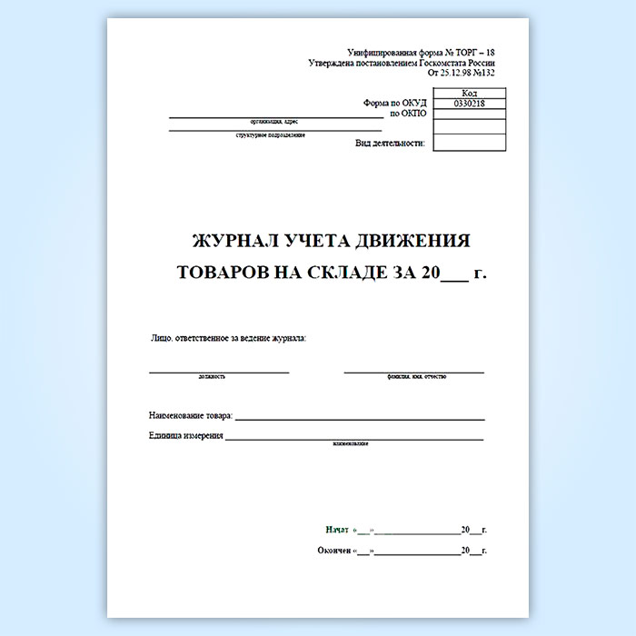 Журнал учета товаров на складе (форма ТОРГ-18) в Великом Новгороде купить