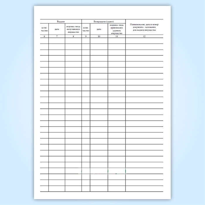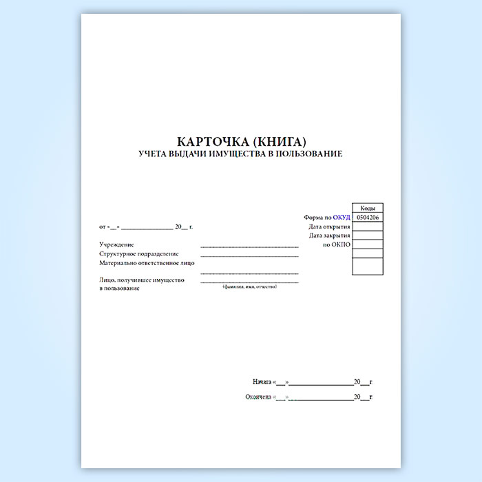 Карточка (книга) учета выдачи имущества в пользование (форма по ОКУД 0504206) в Великом Новгороде купить