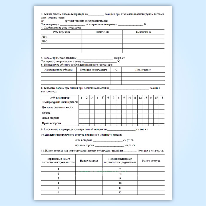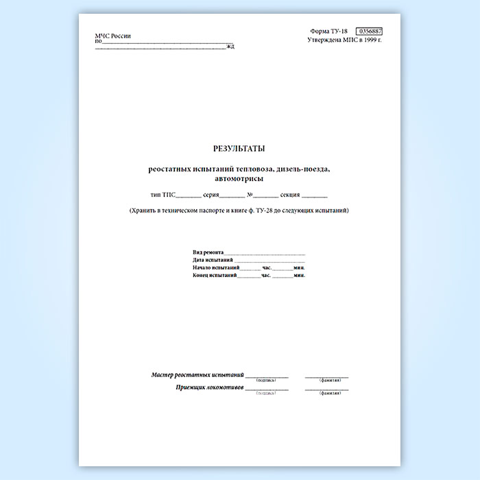 Результаты реостатных испытаний тепловоза, дизель-поезда, автомотрисы (форма ТУ-148) в Великом Новгороде купить