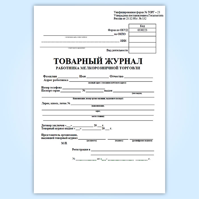 Товарный журнал работника мелкорозничной торговли (форма № ТОРГ-23) в Великом Новгороде купить