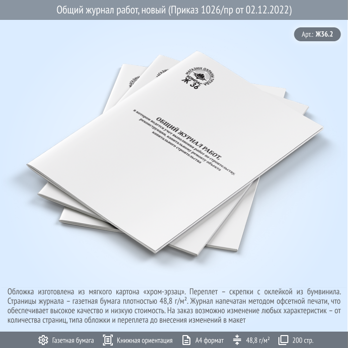Общий журнал работ, новый (Приказ 1026/пр от 02.12.2022, 200 стр., Ж36.2) в Великом Новгороде купить