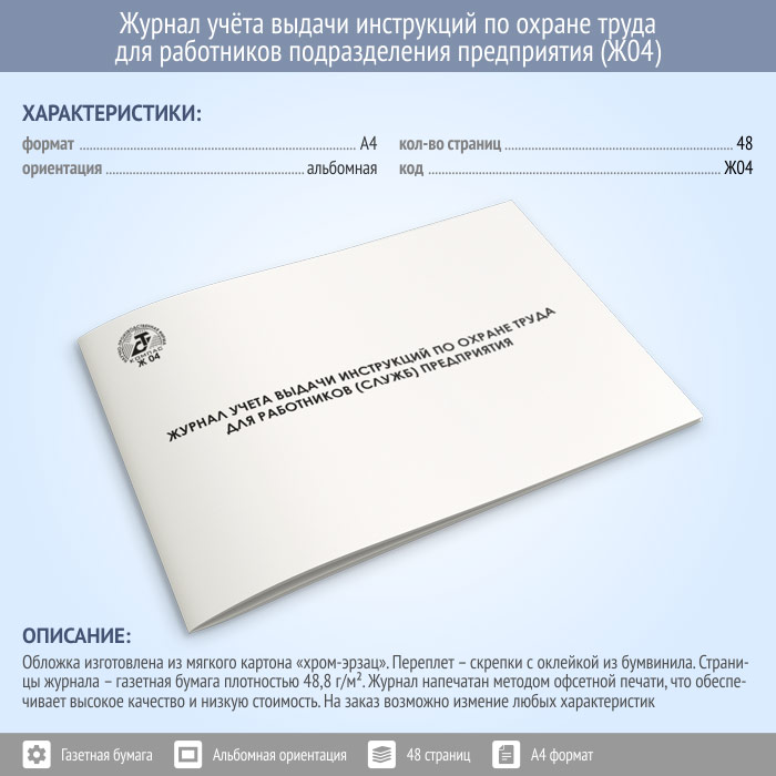 Журнал учета выдачи инструкций по охране труда для работников подразделений (служб) предприятия (48 стр., Ж04) в Великом Новгороде купить