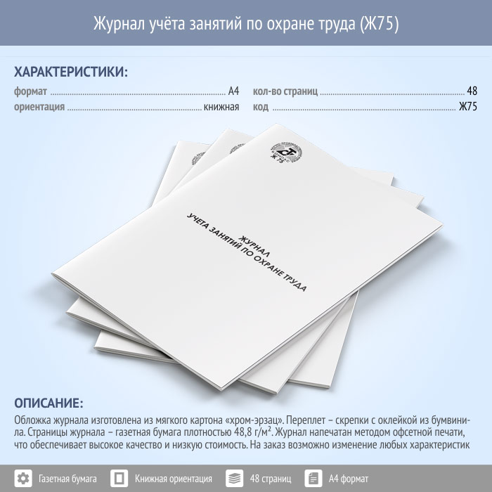 Журнал учета занятий по охране труда (48 стр., Ж75) в Великом Новгороде купить