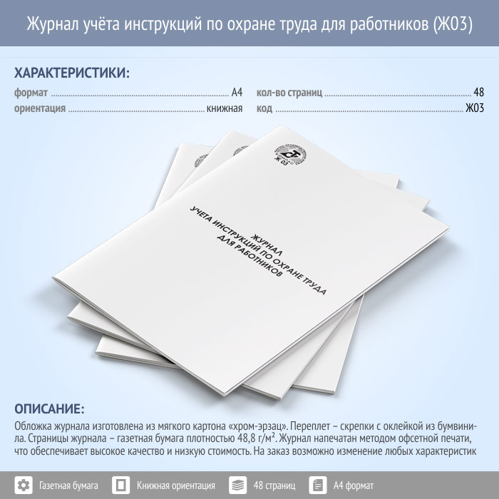 Журнал учета инструкций по охране труда для работников (48 стр., Ж03) в Великом Новгороде купить