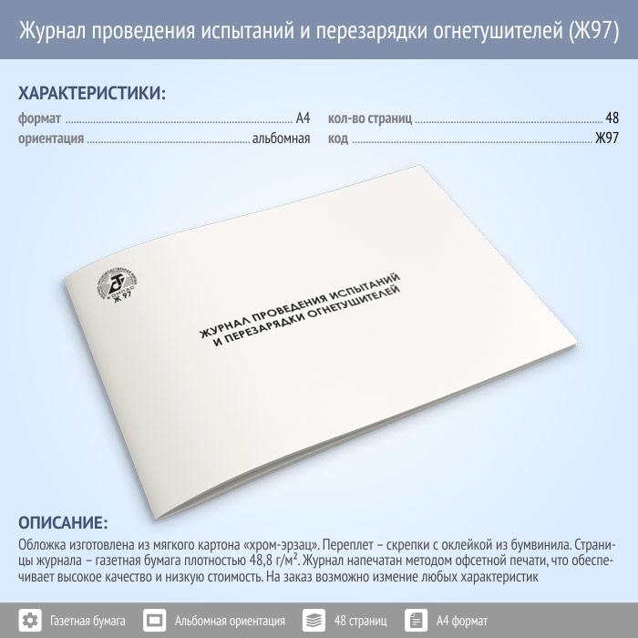 Журнал проведения испытаний и перезарядки огнетушителей (48 стр., Ж97) в Великом Новгороде купить