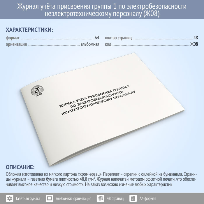 Журнал учета присвоения группы 1 по электробезопасности неэлектротехническому персоналу (48 стр., Ж08) в Великом Новгороде купить