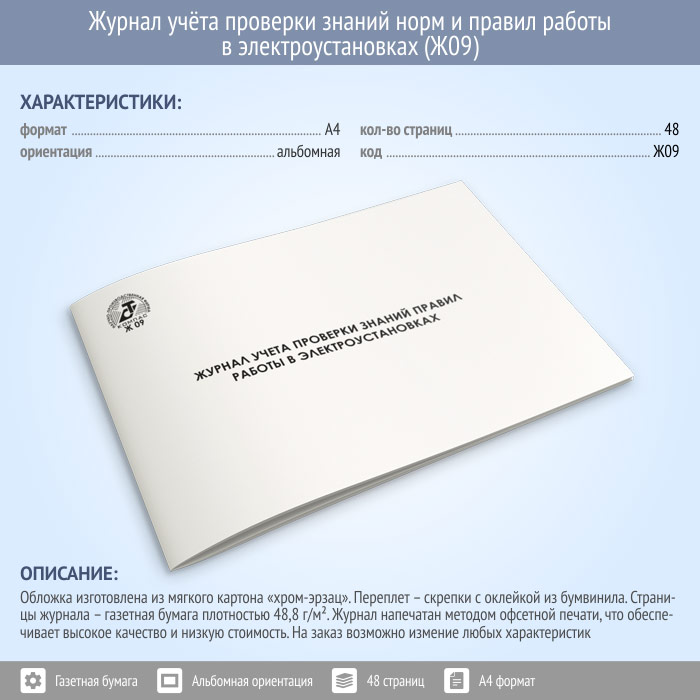 Журнал учета проверки знаний норм и правил работы в электроустановках (48 стр., Ж09) в Великом Новгороде купить