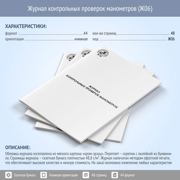Журнал контрольных проверок манометров (КИП) (48 стр., Ж06) в Великом Новгороде купить