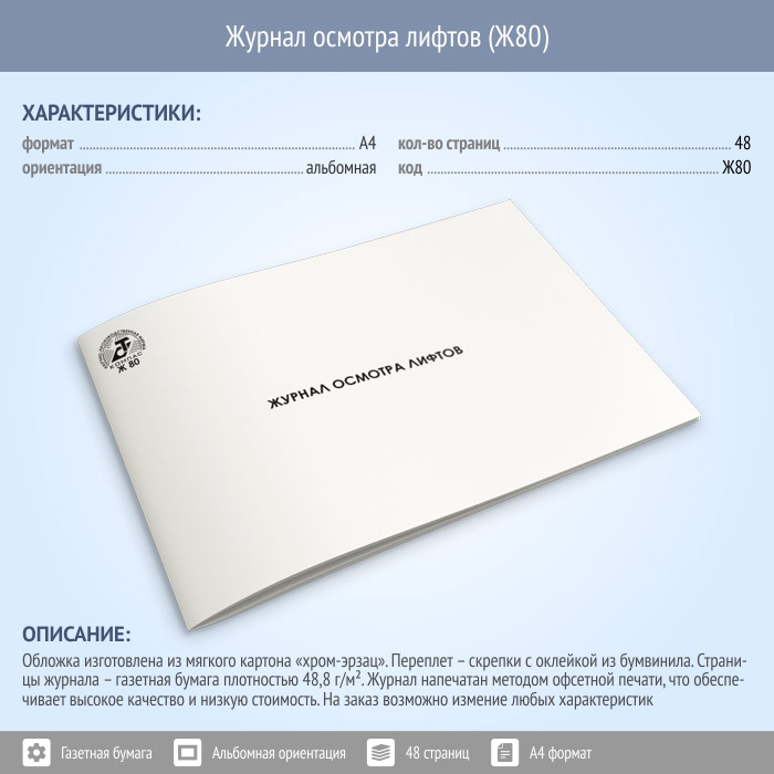Журнал осмотра лифтов (48 стр., Ж80) в Великом Новгороде купить