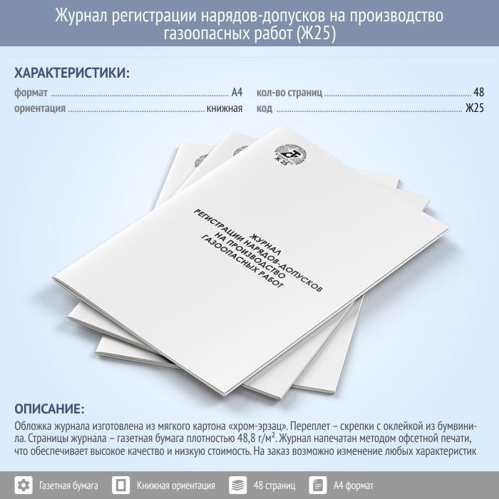 Журнал регистрации нарядов-допусков на производство газоопасных работ (48 стр., Ж25) в Великом Новгороде купить