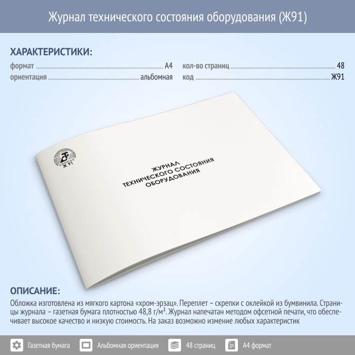 Журнал технического состояния оборудования (48 стр., Ж91) в Великом Новгороде купить
