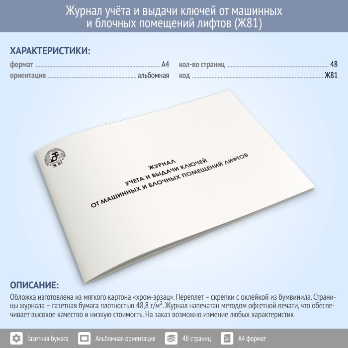 Журнал учета и выдачи ключей от машинных и блочных помещений лифтов (48 стр., Ж81) в Великом Новгороде купить