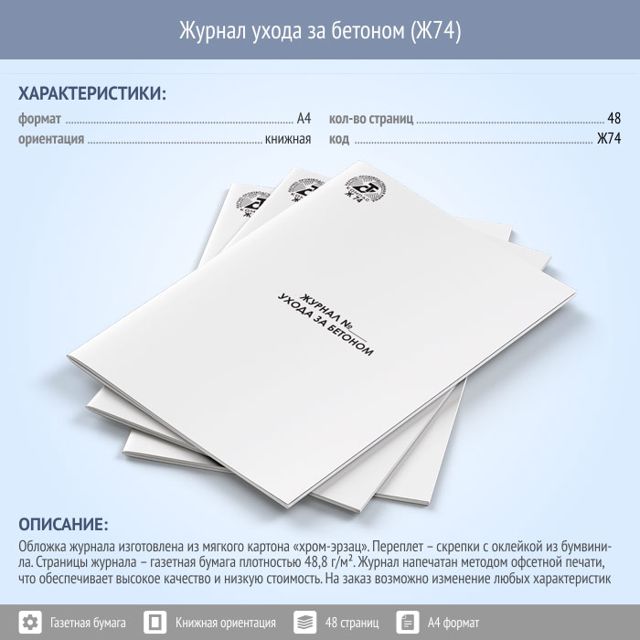 Журнал ухода за бетоном (48 стр., Ж74) в Великом Новгороде купить