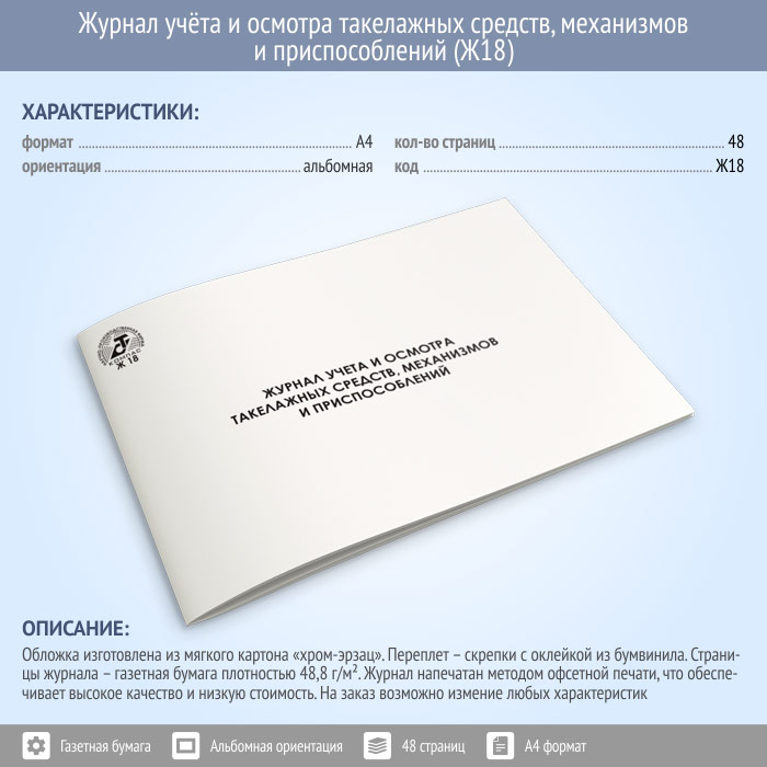 Журнал учета и осмотра такелажных средств, механизмов и приспособлений (48 стр., Ж18) в Великом Новгороде купить