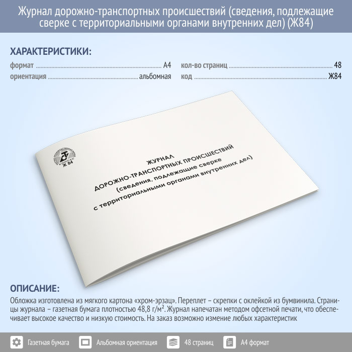 Журнал дорожно-транспортных происшествий (сведения, подлежащие сверке с территориальными органами внутренних дел) (48 стр., Ж84) в Великом Новгороде купить