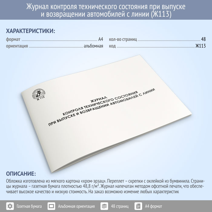 Журнал контроля технического состояния при выпуске и возвращении автомобилей с линии (48 стр., Ж113) в Великом Новгороде купить