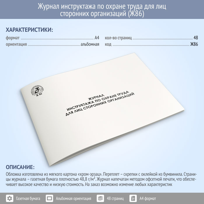 Журнал инструктажа по охране труда для лиц сторонних организаций (48 стр., Ж86) в Великом Новгороде купить