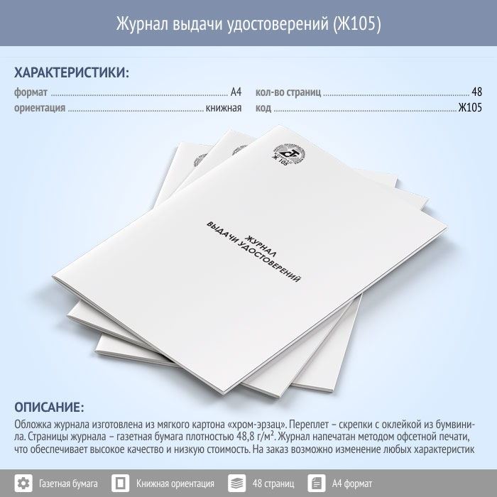 Журнал выдачи удостоверений (48 стр., Ж105) в Великом Новгороде купить