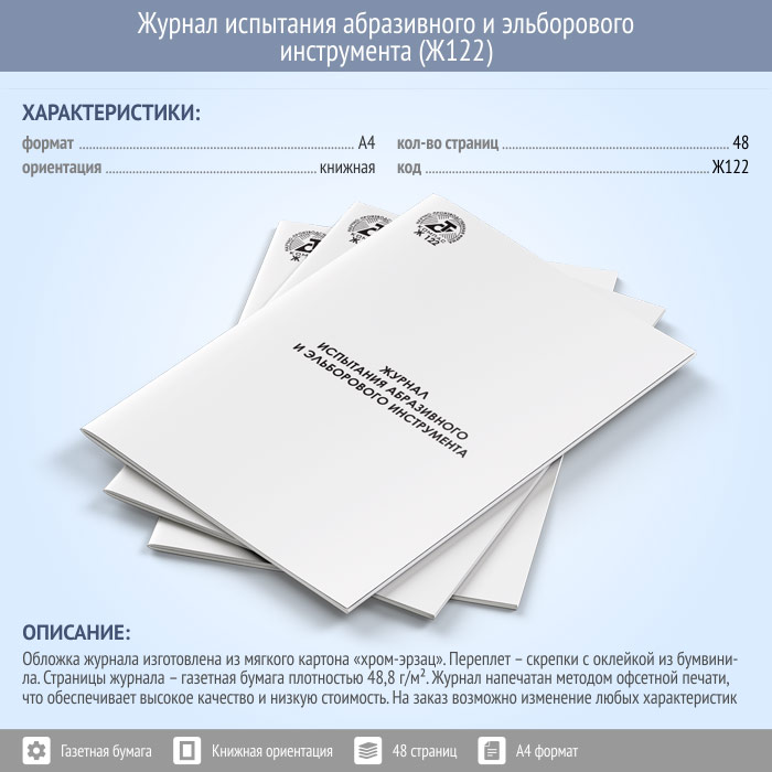 Журнал испытания абразивного и эльборового инструмента (48 стр., Ж122) в Великом Новгороде купить