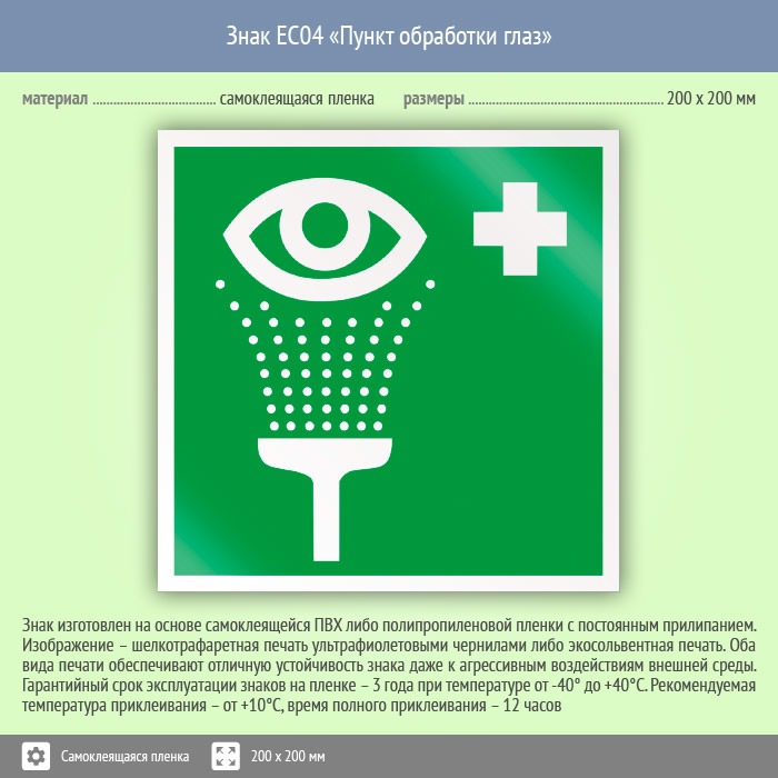 Знак EC04 «Пункт обработки глаз» (пленка, 200х200 мм)