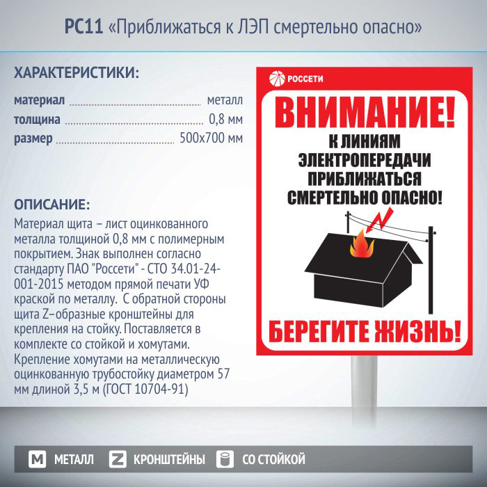Информационный щит «Приближаться к ЛЭП смертельно опасно», РС11 (металл, 500х700 мм, с металлической стойкой) в Великом Новгороде купить