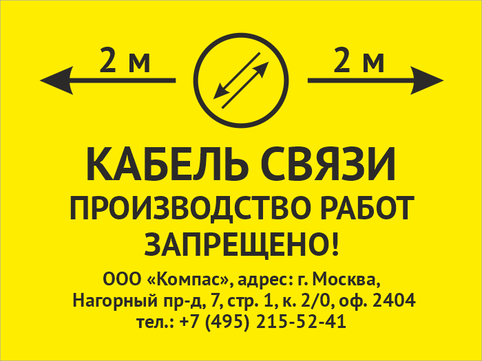 Знак «Охранная зона кабеля связи. Производство работ запрещено», OZK-03 (пластик 2 мм, 400х300 мм) в Великом Новгороде купить