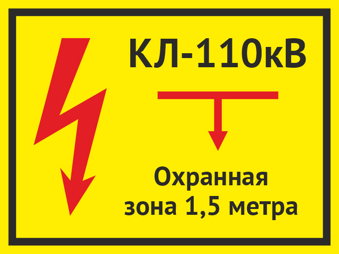 Табличка «КЛ 110 кВ, охранная зона 1.5 метра», OZK-08 (пластик 2 мм, 400х300 мм) в Великом Новгороде купить
