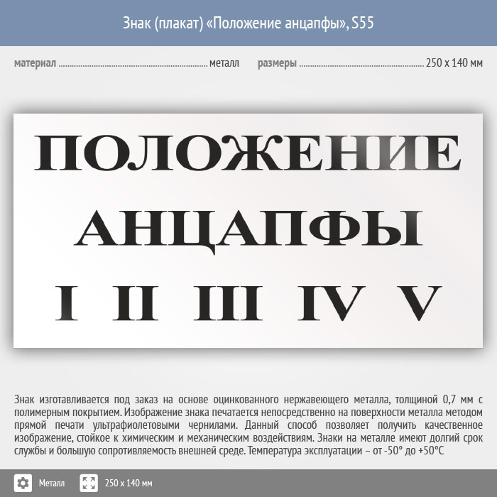 Знак (плакат) «Положение анцапфы», S55 (металл, 250х140 мм) в Великом Новгороде купить
