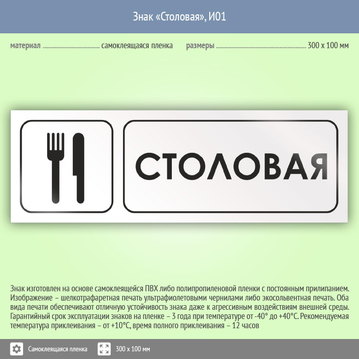 Знак «Столовая», И01 (пленка, 300х100 мм) в Великом Новгороде купить