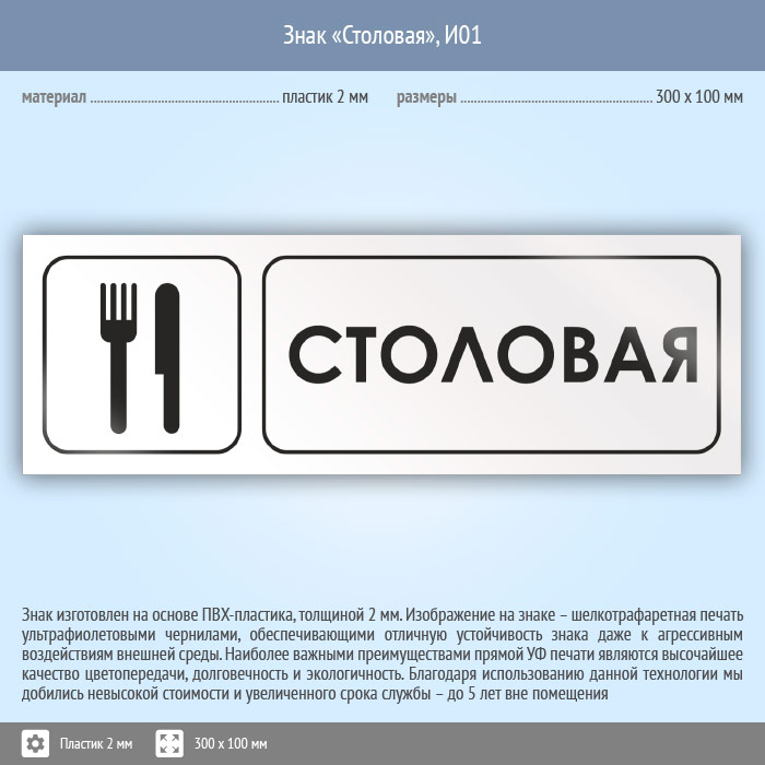 Знак «Столовая», И01 (пластик, 300х100 мм) в Великом Новгороде купить