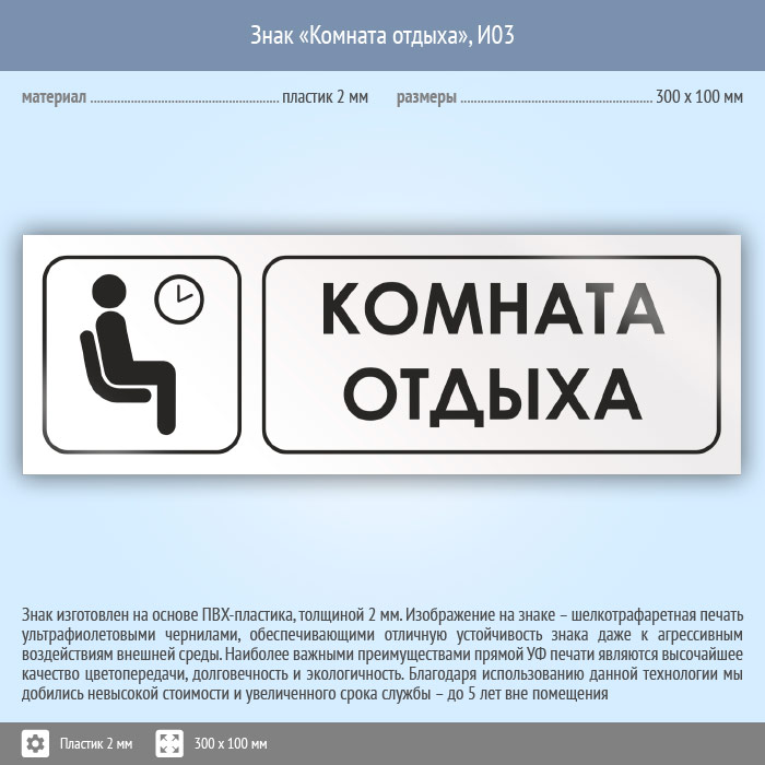 Знак «Комната отдыха», И03 (пластик, 300х100 мм) в Великом Новгороде купить