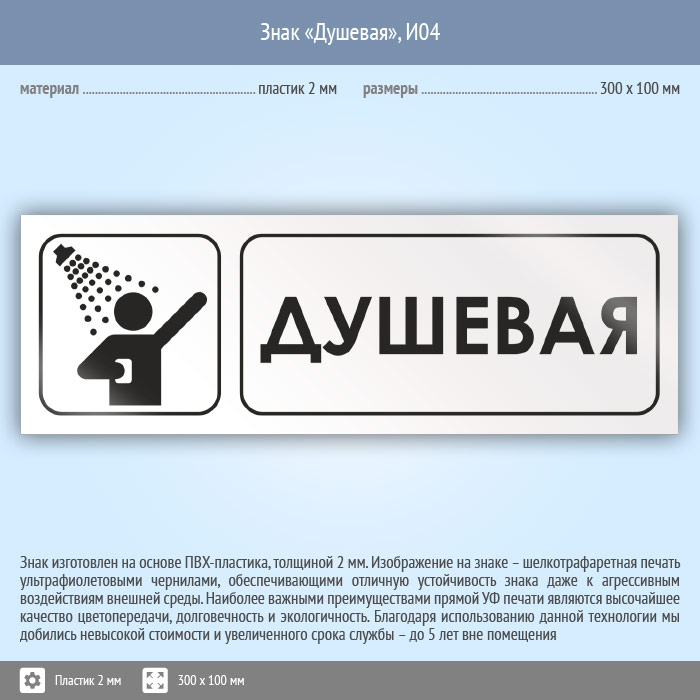 Знак «Душевая», И04 (пластик, 300х100 мм) в Великом Новгороде купить