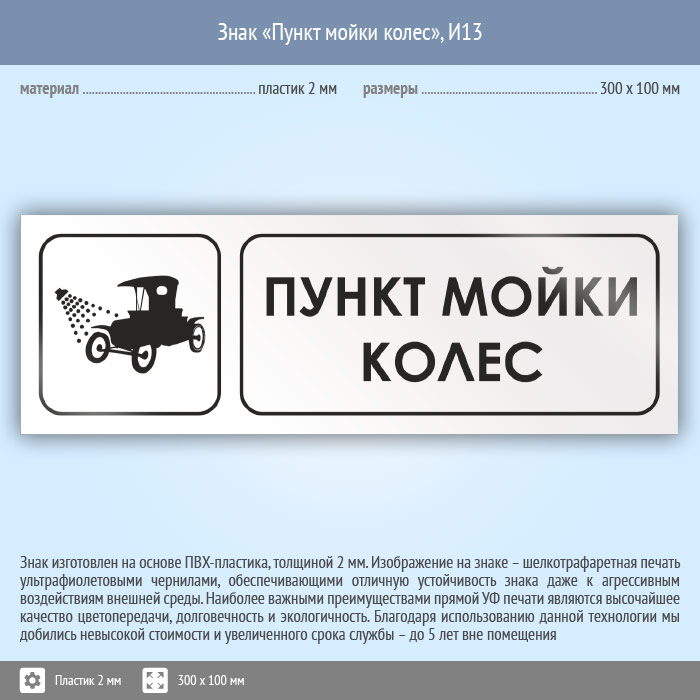 Знак «Пункт мойки колес», И13 (пластик, 300х100 мм) в Великом Новгороде купить