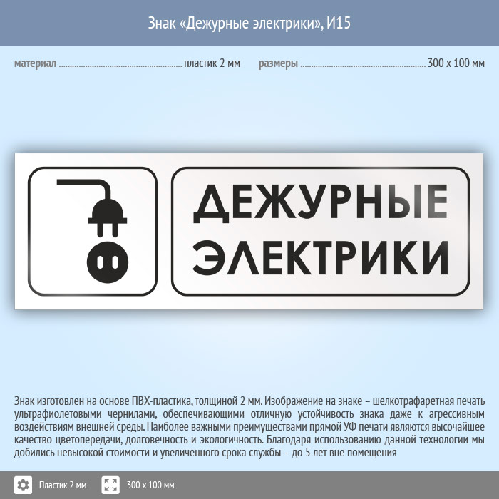 Знак «Дежурные электрики», И15 (пластик, 300х100 мм) в Великом Новгороде купить
