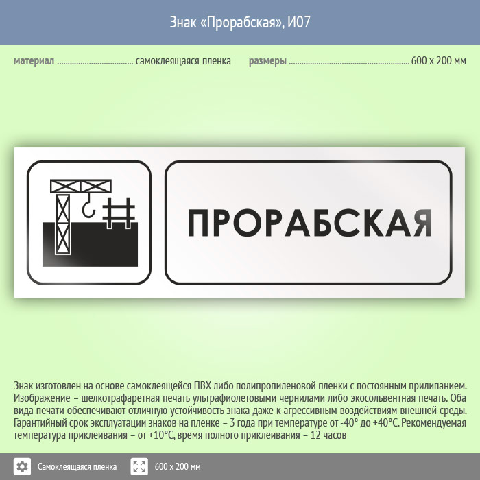 Знак «Прорабская», И07 (пленка, 600х200 мм) в Великом Новгороде купить