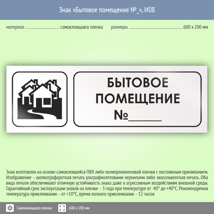 Знак «Бытовое помещение №_», И08 (пленка, 600х200 мм) в Великом Новгороде купить